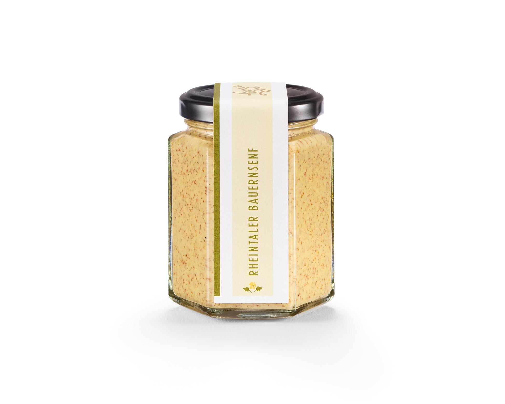 Rheintaler Bauernsenf besticht durch seine Ausgewogenheit im Zusammenspiel der Schärfe der ausgesuchten Senfkörner, der Säure des Apfelmostes und des Weißweines, sowie der Süße des zur Abrundung zugesetzten Zuckers. Zur Herstellung dieses Senfes werden nur ausgesuchte Senfsaaten – aus selbst initiiertem Anbau im Weinviertel und Apulien – verwendet.