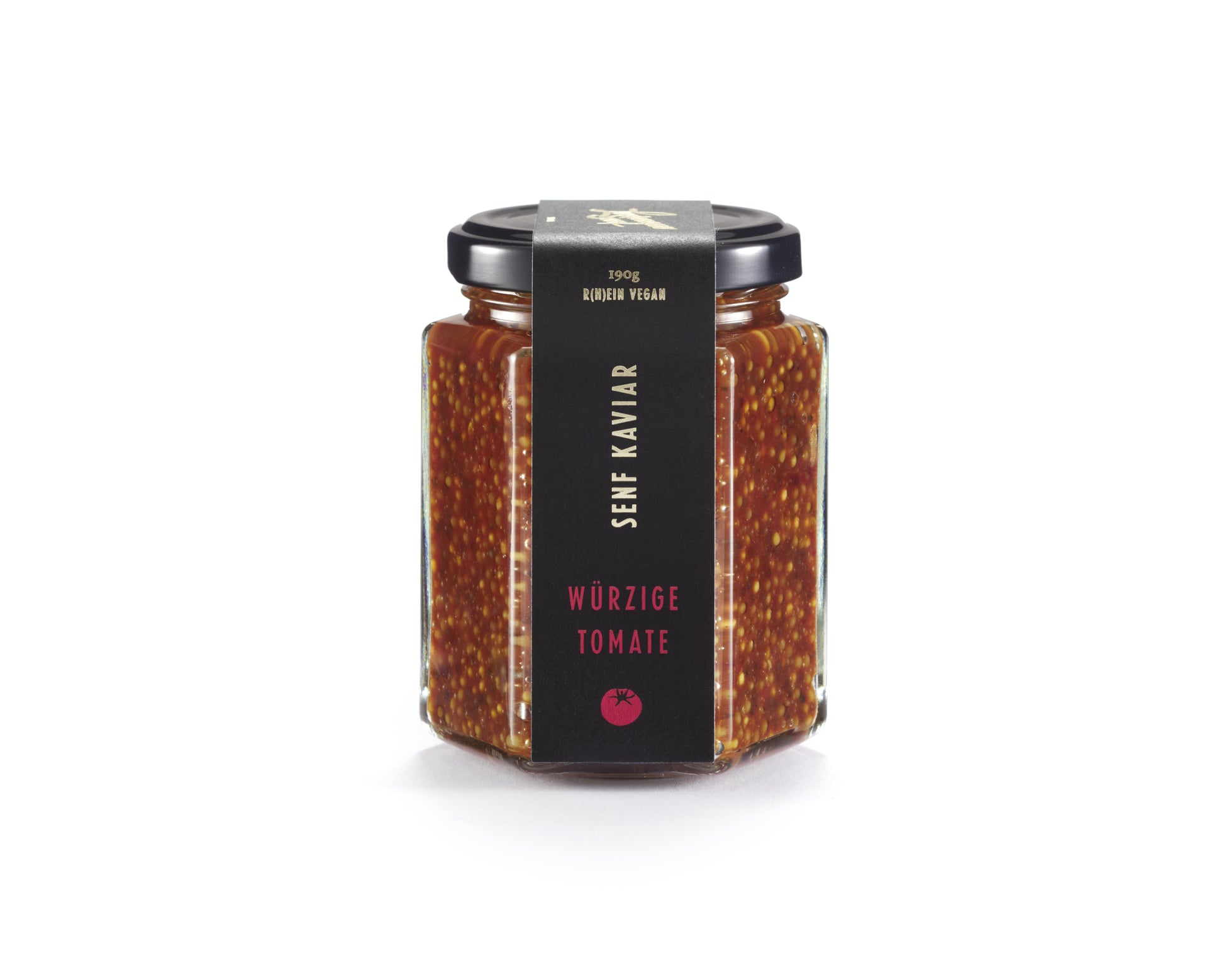 Getrocknete Tomaten verleihen diesem Senfkaviar seine intensiv rote Farbe. Geschmacklich hervorgehoben durch die dezente Säure von weißem Balsamessig und abgerundet durch eine Prise Piment, entsteht ein würziger Senfkaviar. Er passt perfekt zu kalten Platten oder auch zu Gegrilltem. Selbst einem asiatischen Gemüsereis verhilft er zu etwas mehr Pepp.